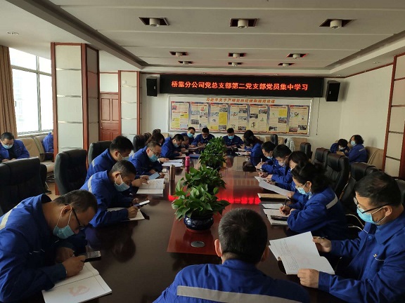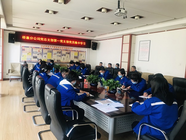 4月22日,桥靠分公司党总支部组织第一、第二党支部共56人在三楼会议室分上下午不同时间段集中学习。