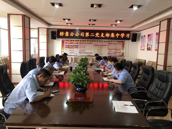 8月13日上午,桥靠分公司党总支部第二党支部组织党员、预备党员、发展对象、积极分子在行政楼三楼会议室进行集中学习,会议由党支部书记尹洁主持。