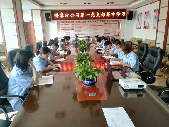 8月13日下午,桥靠分公司第一党支部组织党员、预备党员、发展对象、积极分子22人在三楼会议室进行集中学习。