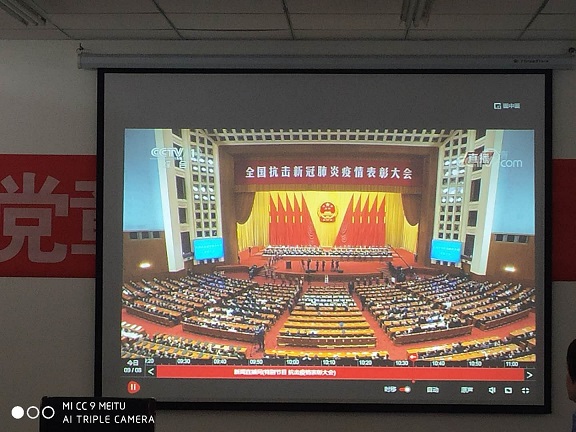 9月8日上午10点,全国抗击新冠肺炎疫情表彰大会在北京人民大会堂隆重举行。城发金桥热网分公司党支部组织党员、干部和职工,在分公司二楼会议室集中观看全国抗击新冠肺炎疫情表彰大会直播。