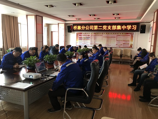 11月19日下午,桥靠分公司第二党支部组织党员、预备党员、发展对象、积极分子集中学习,第二党支部书记尹洁主持会议。