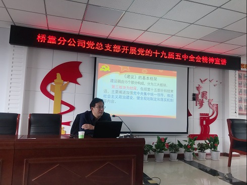 12月1日下午,桥靠分公司党总支邀请市委党校党史党建教研室主任李恩巍教授宣讲党的十九届五中全会精神。分公司党员、预备党员、发展对象、积极分子、环节干部在党员活动中心聆听学习宣讲。