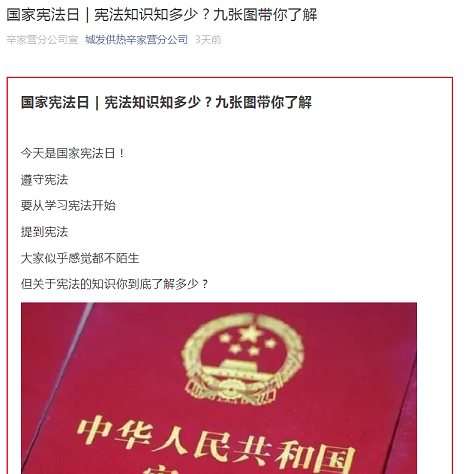 本次活动以线上宣传为重点,围绕活动主题开展多层次普法宣传活动。党员干部通过学习强国平台,线上学习宪法知识、党的十九届五中全会精神、疫情防控等相关法律法规及习近平法治思想等重要论述。分公司运用微信公众号及微博平台,推送宪法基础知识及宣传标语、海报等。利用LED滚动屏播放宪法宣传标语,形成了良好的宣传氛围。