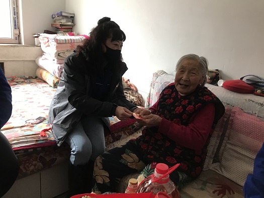 桥靠分公司党总支部得知此情况后,党员们为老人捐款捐物,共捐到现金2485元,为老人送去了新春祝福并给老人购买米、面、油、水果等食品,剩余现金捐给刘玉梅老人用于补贴家用。党员们陪老人促膝交谈、嘘寒问暖,详细了解老人的身体和生活状况,随后为老人打扫卫生、整理房间、擦玻璃、贴窗花,欢乐笑语洋溢老人家,温暖沁入老人心!刘玉梅老人握着赵书记的手感谢的说:“谢谢你们为我们提供这么舒适的温度,今年家里是最暖和的一年,更谢谢你们为我送来的钱和物品,关心我,给我送来温暖,今天我就像过年一样高兴”。