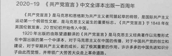 图5:【《共产党宣言》中文全译版出版一百周年】纪念邮票简介