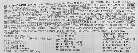 图9:《中国共产党成立九十周年》纪念邮票简介