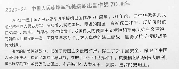 图16:《中国人民志愿军抗美援朝出国作战70周年》纪念邮票简介