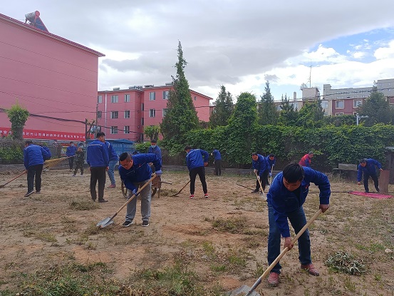 在第二干休所,志愿者们个个精神饱满、情绪高涨,活动组织有序,分工明确,充分发扬不怕脏、不怕苦的优良作风,全力投入到清理杂草、拾捡垃圾、擦拭宣传栏、搬运废旧杂物中。党员、团员们齐心协力,你一锹、我一铲,干的热火朝天,给退役老干部营造了一个更加整洁舒适的居住环境。