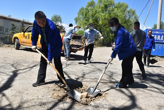 正喇嘛营村有一条2公里的环村水泥路,是村民耕种和出行的重要道路,因车辆长期碾压,排水设施不完善等原因造成路面坑坑洼洼,影响村民和分公司职工的出行。为确保安全出行,金桥分公司党支部组织党员、积极分子开展义务修路活动,为正喇嘛营村修补村内水泥路上大大小小的坑洼路面。
