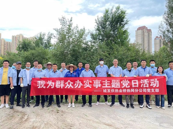 7月7日下午,金桥热网分公司党支部组织全体党员、发展对象和积极分子共计32人,在赛罕区市民服务中心附近开展“我为群众办实事”主题党日活动。