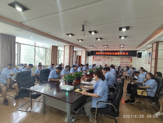 6月29日上午,桥靠分公司党总支部组织党员集中学习。