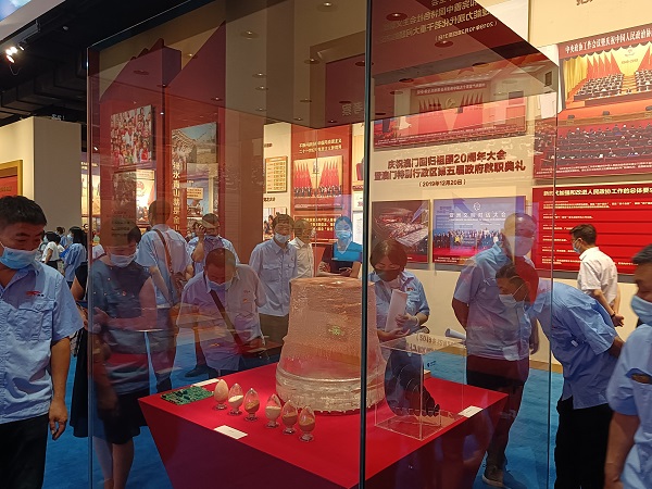 在展览馆,党员同志们跟随讲解员的步伐,先后参观了“建立中国共产党,夺取新民主主义革命伟大胜利”“成立中华人民共和国,进行社会主义革命和建设”“实行改革开放,开创和发展中国特色社会主义”“推进中国特色社会主义进入新时代,全面建成小康社会,开启全面建设社会主义现代化国家新征程”四部分展览内容。珍贵的文物实物、翔实的档案资料、生动的图片视频,再现了中国共产党的百年奋斗历程和取得的辉煌成就。参观过程中,大家认真聆听讲解,不时驻足观看,交流思想体会。