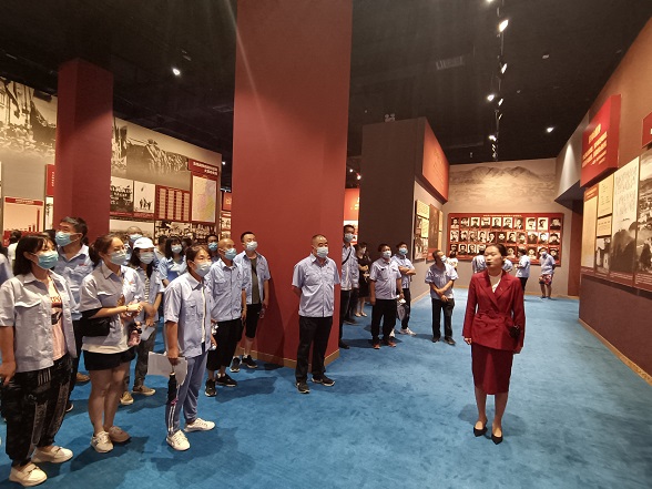 参观结束后,大家来到一楼大厅。面向鲜红的中国共产党党旗,党总支部书记杨保国同志带领党员同志们举起右拳重温了入党誓词,再次深刻感受党员的责任、使命和荣耀。