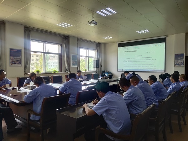 会上,传达了集团公司党委转发的《关于认真学习贯彻<中国共产党党徽党旗条例>的通知》。就《中国共产党党徽党旗条例》中党徽党旗生产制作、使用管理、监督问责等24条内容进行了详细学习。