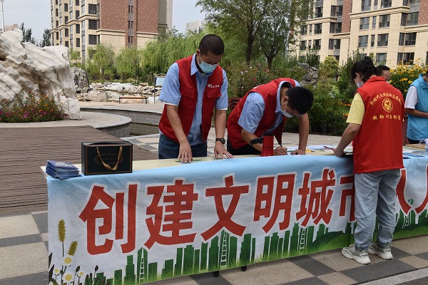 9月14日上午,辛家营分公司党支部第二党小组联合赛罕区敕勒川路街道办事处电力腾飞社区走进赛罕区锦绣福源A区开展创建全国文明城市宣传活动,助力文明城市创建。