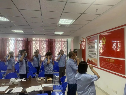 胡日查同志宣读了集团公司党委审批通过齐乐、张学敏两位同志成为中国共产党预备党员,庄永飞、刘涛两位同志按期转为中国共产党正式党员相关事宜,并向齐乐、张学敏两同志表示了衷心祝贺,要求她们在今后的学习和工作中不断用实际行动践行初心使命,以党员的标准严格要求自己,时刻保持共产党员的良好形象、先进本色。随后,胡日查同志带领齐乐、张学敏两位同志和其他全体党员同志高举右手,庄严宣誓,再一次重温入党誓词,重忆入党初心。齐乐、张学敏两位同志表示,作为新时代的青年,将牢记党的宗旨,牢记入党初心和使命,脚踏实地做好本职工作,以饱满的热情和昂扬的斗志投入到工作中去。