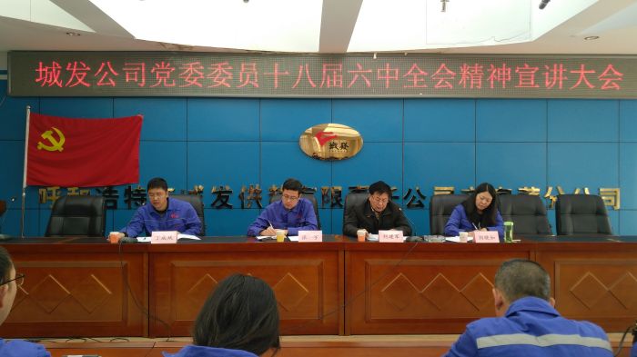 11月22日,辛家营分公司党支部组织集中学习,由城发公司党委委员、副总经理刘建军同志作十八届六中全会精神宣讲。分公司全体党员、预备党员、培养对象、积极分子和副处以上环节干部共54人参加了本次学习。