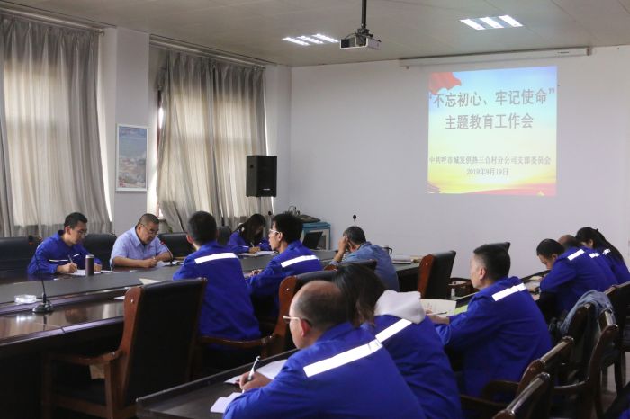 9月19日下午,三合村分公司党支部在分公司三楼会议室组织召开“不忘初心、牢记使命”主题教育工作会,分公司全体党员、预备党员、发展对象、积极分子54人参加,党支部书记杨保国同志主持。