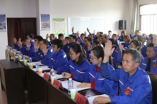 10月15日上午,三合村分公司组织全体党员在分公司三楼会议室召开党员会议,城发公司党委委员、副总经理史继文同志参加了会议,纪检监察审计部工作人员监督指导,分公司党支部书记杨保国同志主持会议,分公司党员、预备党员、发展对象、积极分子共计60人参加。