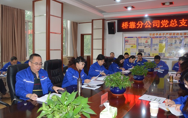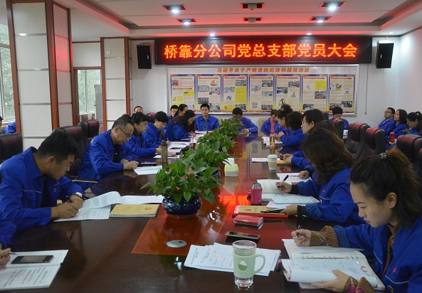 10月17日上午9点,桥靠分公司党总支部组织党员、预备党员、发展对象、积极分子共50人在行政楼三楼会议室召开党员会议。党总支部书记赵怡春主持。