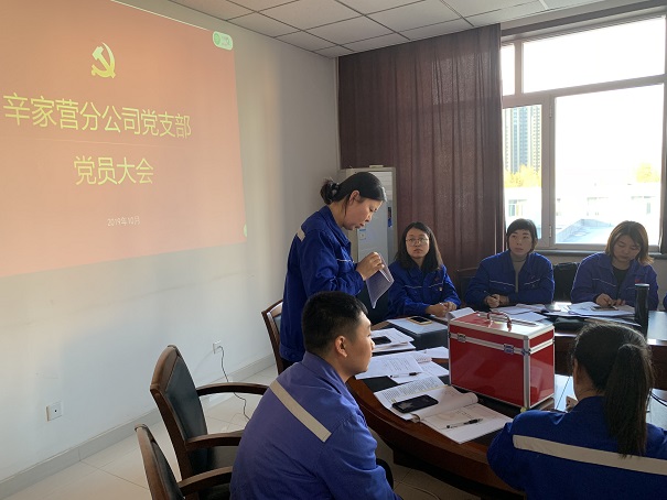 10月24日下午,辛家营分公司党支部组织全体党员、发展对象、积极分子在310会议室召开党员会议,城发公司党委委员、副总经理刘建军同志讲了党课。