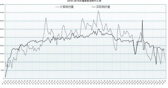 15-16年度采暖季呼和浩特市出现了-28℃的极寒天气,如下图所示,在供暖中期金桥电厂实际提供的热负荷(下图中实际耗热量)根本无法满足居民的用热需求(下图中计算耗热量),尤其是在寒冷天气后半夜时居民用电低峰时热负荷更无法满足正常供热需要,难以保证居民用热质量。若金桥热电厂进行蓄热罐加热泵技术的改造,即可提高城发公司供热质量,又可以满足电力调峰要求。