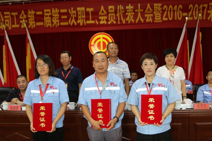 2016年,三合村分公司在全体职工的共同努力下,供热平稳运行,为热用户提供了优质服务,圆满完成指标任务。同时,分公司涌现出一批团结协作、友爱互助的先进集体和爱岗敬业、勤奋工作的干部职工。大会授予设备材料处、水化车间、运营二所3部门“呼市城发三合村分公司2016-2017采暖年度先进集体”荣誉;授予贾玉玲、郭建军、林敏3名同志“呼市城发三合村分公司2016-2017采暖年度优秀干部”荣誉;授予郭少鹏等16名同志“呼市城发三合村分公司2016-2017采暖年度劳动模范(先进工作者)”荣誉称号。城发公司党委副书记、工会主席张永同志、城发公司常务副经理史继文同志、城发公司工会副主席薛景翠同志、分公司张学文经理、娜仁副经理、郑凯副经理、王俊平副经理为受表彰员工办法了荣誉证书及奖金。