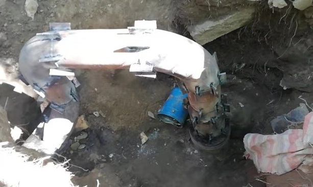 为防止大量失水,检修人员决定关断漏点前后管线阀门进行泄水,在确定周围地下管线情况后,在10月2日开挖抢修。由于现场地下管线错综复杂不能机械作业,检修人员决定人工开挖,漏点位于管线最低处,泄水量较大,抢修人员采用多处同时泄水的方法,加大泄水量尽量缩短抢修时间。管道排空后,抢修人员立即对管道进行了仔细排查,确认漏点为顶管横过敕勒川大街DN300管线上挖眼三通处焊口开裂。