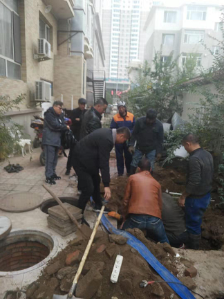 据了解,储运小区为老旧小区,10月13日储运站正式供热,10月15日下午5点站内突然掉压停泵,运营二所随即安排调网员查找失水点发现储运小区管道跑水,且水已顺着墙缝留满3号楼整个地沟,保驾护航人员到达现场后迅速进行抽水抢修。因储运小区主管道为地沟填埋,管道保温不完整,常年埋于土中腐蚀严重,且管道上方有3间临建房,抢修施工需将中间一间拆除,然后挖出管道进行维修,施工难度大,经过多方协商,加班加点几昼夜于10月21日23时45分抢修完成,恢复供热。次日上午运营二所安排客服员、催费员进小区走访,排查供热情况,得到居民的一致肯定。
