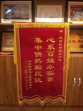 10月25日上午,三合村分公司辖区内储运小区居民代表将一面写有“集中供热解民忧,心系百姓办实事”的锦旗送到分公司,以此感谢分公司及时抢修二次管网保障小区居民供热。