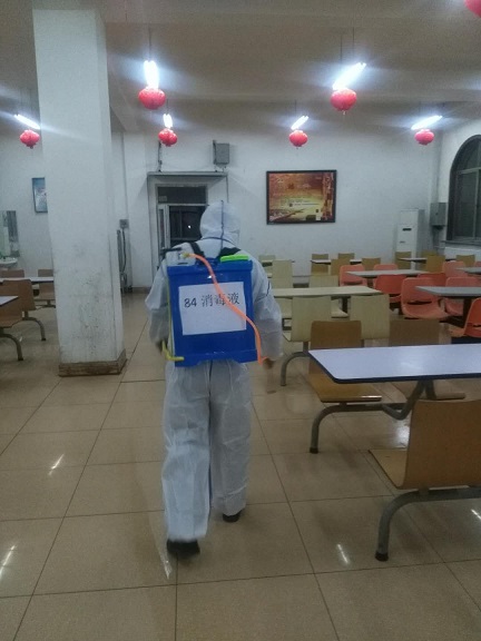 疫情防控期间,领餐人员在进入食堂前,自觉接受体温测量,做好个人卫生防护,勤洗手消毒,进入食堂必须佩戴口罩。同时对食堂从业人员进行岗前防疫知识培训,强化人员管理,对所有从业人员进行摸排,并按照疫情防控相关要求进行管理。厨师、其他工作人员一律要求穿白大褂,严禁有感冒、发热、咳嗽、腹泻等症状的从业人员上岗。食堂工作人员操作前,必须洗手消毒,一律戴口罩和一次性手套,防止交叉污染。对食堂及周边环境进行清洁消毒,每餐前后对加工场所(含就餐场所)进行物体表面、空气等环境卫生消毒。餐厨废弃物分类管理、按规定处置,设有专用带盖垃圾桶,做到日产日清。