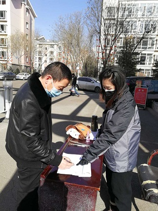 防疫一线,虽然是女孩,她总是冲在前面,毫无怨言,卡口需要测量检测,她冒着严寒和感染的风险,有时一站就是三个小时,她仍一丝不苟,做到不漏一人,碰到思想麻痹、不配合的居民,她总是耐心地,一遍又一遍地做思想工作,提醒他们佩戴好口罩,保持一米安全距离,做好自我防护。