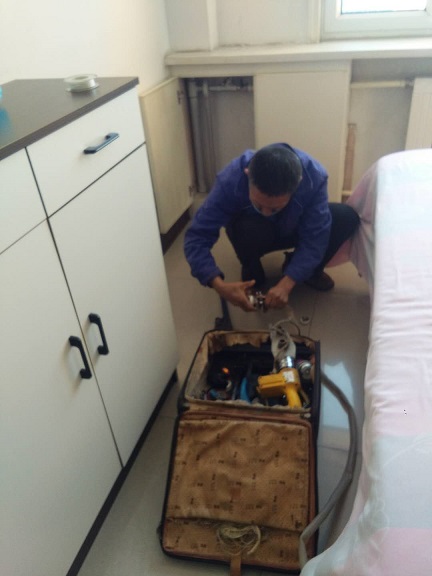 4月2日上午,桥靠分公司第二运营所刘红兵和其他检修师傅匆匆忙忙提着工具包来到了党委36号楼的一位住户家。