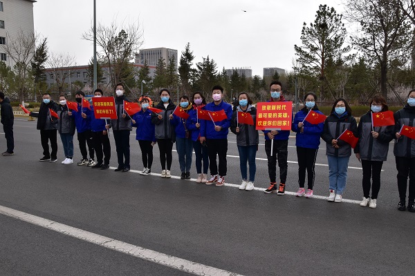 参加活动的全体人员在党支部书记王军的带领下早早来到车队行驶的新华大街,统一穿着工作服,佩戴党徽翘首以盼,站在道路两旁等待着抗疫英雄回家。13时,载着呼和浩特援鄂医疗队的大巴车出现在大家的视线里,现场立即沸腾起来,大家欢欣鼓舞,挥动着手中的国旗,高举欢迎标语,响起热烈的掌声,呐喊共同的心声,向白衣天使致以最崇高、最真诚的敬意。