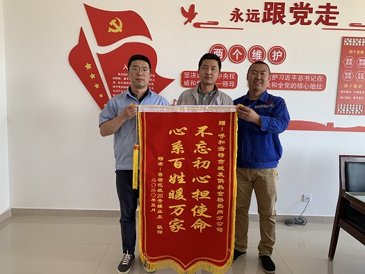 5月26日,香榭花堤小区26号公寓楼业主王先生给城发供热金桥分公司送来一面题为:“不忘初心担使命,心系百姓暖万家”的锦旗,以表达分公司上采暖期协调解决不热问题的感谢。