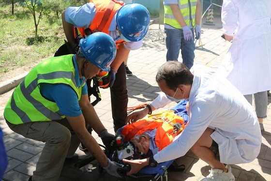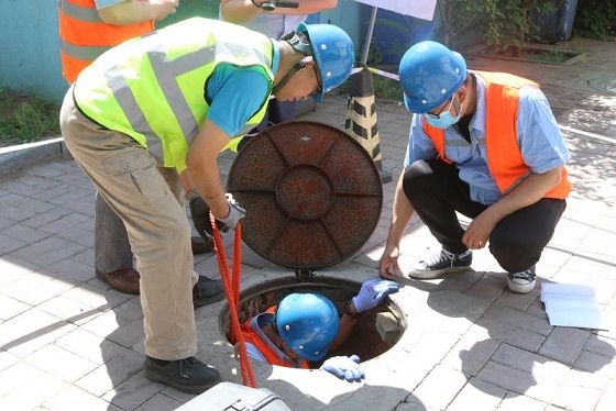 上午10时演练正式开始,由各处室、车间、运营所组成的疏散警戒组、抢险救灾组、医疗救护组、后勤保障组、善后处理组依次入场。演练分报告、应急响应、应急处置、应急终止等演练科目。本次演练以模拟分公司检修人员在爱民街一次管网F阀门井进行排气作业,作业人员经过通风、检测合格后,下井进行排气作业。由于阀门已半年未开启,当作业人员打开阀门后,管内排出部分有害气体致使下井人员中一人脑部缺氧发生暂时性休克,另一人头晕脑胀、四肢酸软,两人同时困于井下,生命受到威胁为场景。演练现场各个小组密切配合采取一系列应急处置措施,有效避免了人员伤亡,顺利完成了本次演练,达到了预期效果。