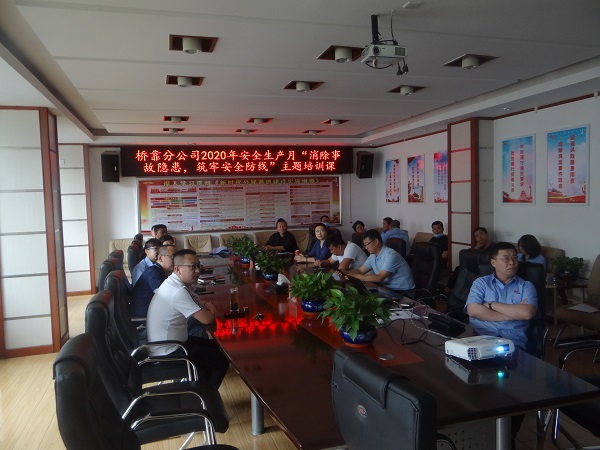 6月28日下午,桥靠分公司安委会成员在办公楼三楼大会议室观看2020年安全生产月主题宣教片。