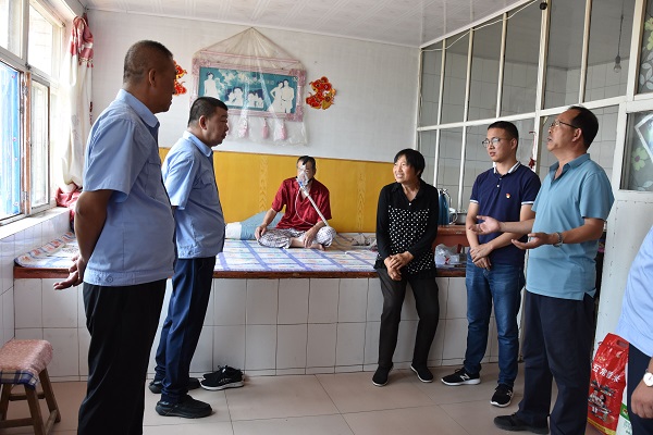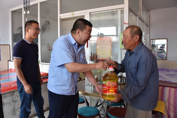郄俊生仔细地听取了驻村党支部“第一书记”吴星成的工作汇报,并从生产、生活方面详细了解了目前脱贫工作的进展情况。随后,走进了建档立卡贫困户王全富和杨根伟老人家中,这两户贫困户皆是因病致贫。王全富老人的妻子患血小板减少症及高血压,需定期检查治疗,花费较大,导致家庭贫困;杨根伟患肺气肿,需长期吸氧维持,其妻子患类风湿性关节炎,已丧失劳动能力,家庭贫困。今年驻村干部带其去县医院和县残联办理了三级肢体残疾证,减轻其经济负担,使其生活得到保障,为下一步办理低保做好准备。他关切地询问了老人近来的身体状况,并为老人送去了米、面、油等慰问品。