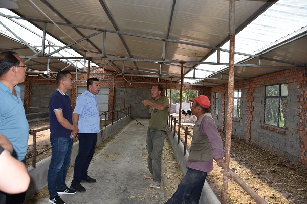 走访中了解到,返乡青年郑利俊在村党支部和驻村工作队的鼓励动员下,回乡自己创办了肉牛养殖厂,目前肉牛存栏47头。大家参观了肉牛养殖厂,认为这是当地的特色产业,为乡亲脱贫致富、经济发展起到了积极的带头作用。