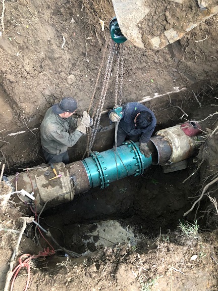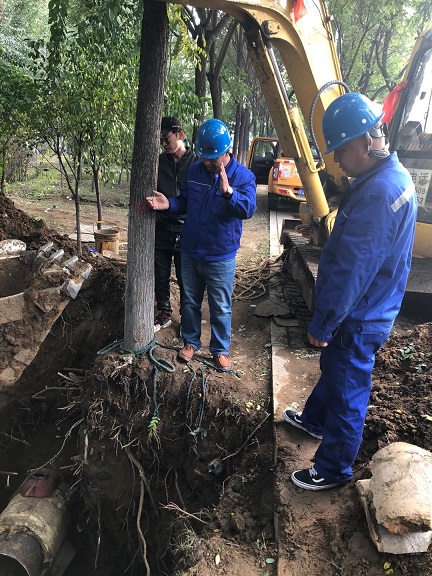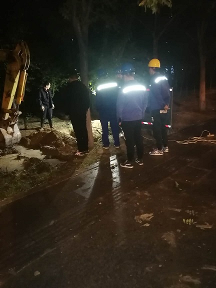 10月10日晚,辛家营分公司检修车间在例行巡检时发现金隅时代城、腾飞路段有漏水现象,巡检人员随即关掉前段阀门阻止继续漏水,并向相关领导上报情况。分公司副经理郑红飞第一时间赶赴现场,联系保运单位制定维修方案。