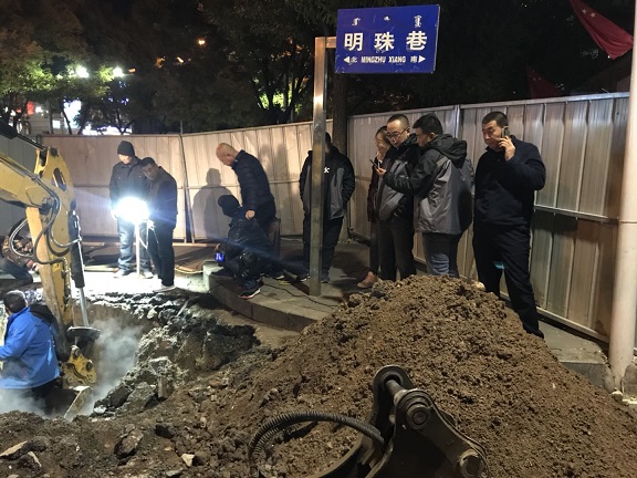 10月17日晚8:30,城发桥靠分公司运营四所班组人员日常巡网中发现明珠巷与大学路路口的一次网管线上渗漏热水,取水化验后确定为一次网漏水,随即通知调度室和分管领导。
