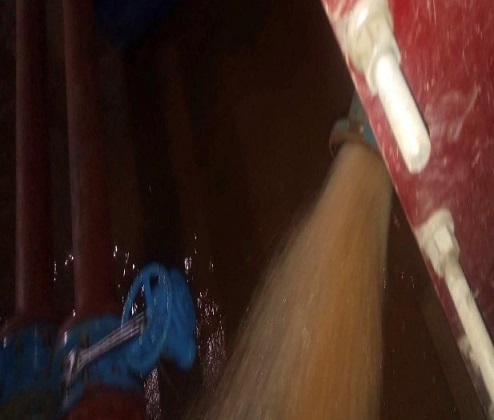 经过检修人员细致检查发现,17楼有一处伸缩器上有漏点,需立即更换伸缩器,随即通知站内运行人员,实施高区停泵泄水。