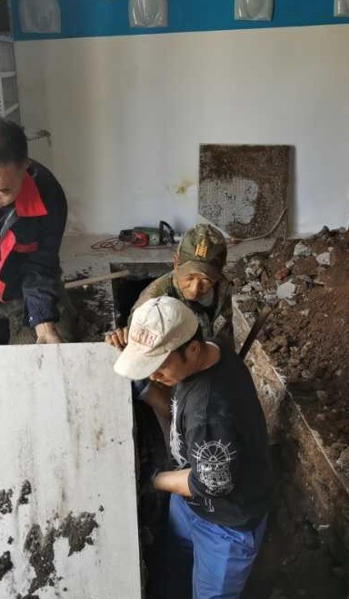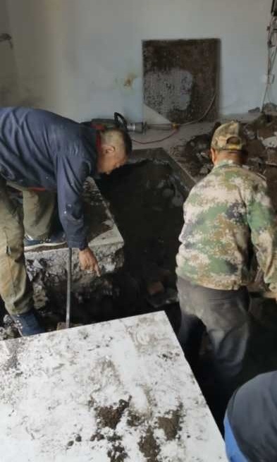经仔细查看发现,是在新大都商铺直埋管有漏水点。由于直埋管的路径在一楼热用户家中地下,所内领导与检修人员多次入户与热用户协商,最终达成一致。关闭站内直埋管环路阀门,由施工队在两户商铺家中破地开挖,寻找漏水点。