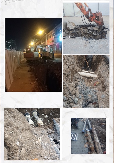 10月22下午开始搭设围挡,破除路面, 10月23日路面破除完成,开挖完成。10月24日早8点关闭阀门开始更换管道,经过16小时连续抢修,于当天24点管道更换完成,恢复正常供热。
