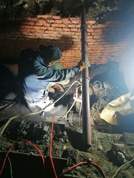 10月19日上午,三合村分公司运营二所辖区内联友小区地沟内管道老化腐蚀造成二次网失水。因地沟内积水较深,工作人员抽水后,在中午13点左右找到漏点。随即关闭该区域环路阀门开始实施抢修工作。