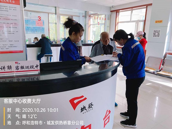 据客服中心主任刘克贞介绍,为缓解收费压力,缩减办理时间,今年,公司对客服大厅的服务设施进行了升级完善,同时新增了用户提供休息区,保证用户累了有座位;每年夏季持续开展员工岗位技能培训,进一步提升服务质量。目前,采暖费收缴工作正在紧张有序地进行当中。同时为了让热用户少走弯路,少跑腿,真正让老百姓体会到了人民至上的贴心服务,收费大厅还推行了“经营环节干部值班制”,由7位精通业务流程和熟悉业务范畴的环节干部周一至周日在收费大厅轮流值班,接待热用户综合业务的咨询,为用户解答问题并进行各类诉求疏导,牢固树立优质服务理念,提升窗口服务软环境。