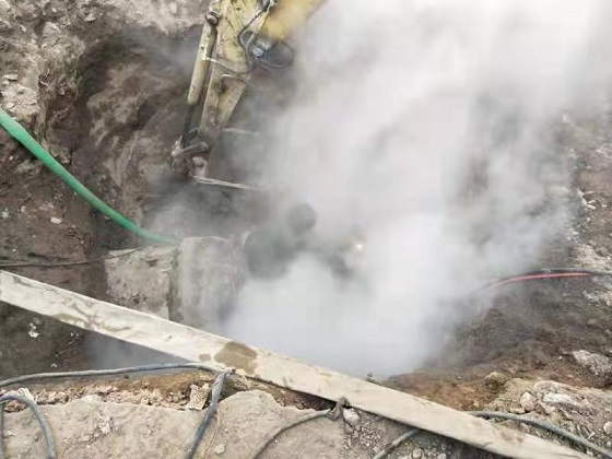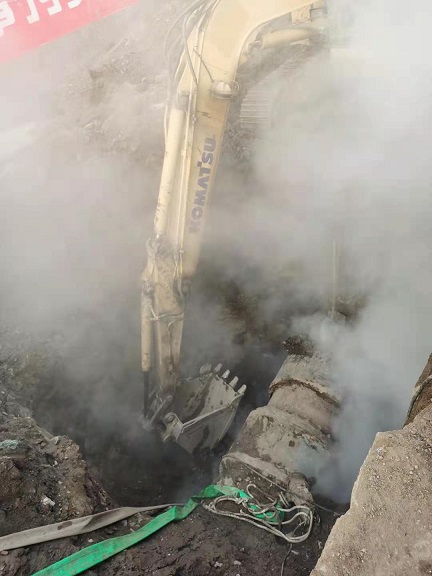 分公司立即组织人员连夜进行抢修,现场采用挖掘机和人工开挖相结合的方式查找失水点,12月4日下午4时找到失水点。找到失水点后,检修人员关闭漏点前后端阀门,运营所人员开始站内泄水。此次失水管网管径为DN900,管道内水量较多,泄水耗时长,室外气温较低,给抢修工作增加了难度。抢修人员不分昼夜全力投入到抢修工作中,经过52小时不间断抢修,于12月6日中午恢复了供热。