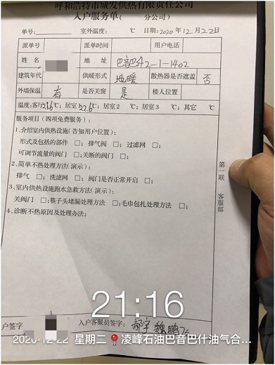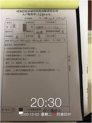 同时,为了进一步更好的为用户提供优质服务,今年城发供热公司在供热区域为每个小区设配置了供热服务管家,并公示了客服管家的私人电话,用户如果有任何供热问题,可以随时联系服务管家,帮助用户解决实际问题。前期巴音巴什小区客服管家已对部分用户进行了摸排走访,发放暖心卡35张。因巴音巴什小区7号楼是小区的末端,客服管家重点进行了摸排走访,发现7号楼3单元低区供水管道过滤器堵塞,随即联合物业进行了清掏,现7号楼3单元低区用户供热温度正常。