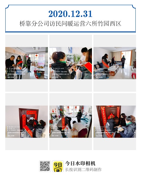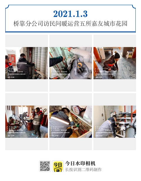 2020年12月31日、2021年1月3日,桥靠分公司“访民问暖”小组走访竹园西区小区和嘉友城市花园小区,共走访用户46户,其中到访不遇15户,现场解决不热问题9户。