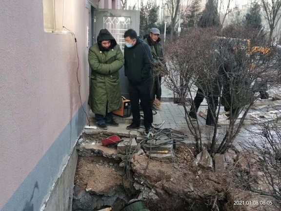 第二天早上,因天气寒冷,漏水位置的柏油路面冻土层太厚,太硬,给挖掘工作增加了困难。同时因前进巷一次网阀门关不严,管网热气依然不断冒出,给作业带来很大阻碍。冯俊一边安排催费员去停暖小区张贴停暖通知,告知用户漏水情况。一边在现场与大家讨论抢修方案。张国梁现场指导作业,现场人员分工明确,争分夺秒的推进作业进程。